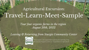 S.D. Specialty Producers Association (SDSPA) invites you to an agricultural excursion of four local, organic farms in the Black Hills to learn about their agricultural production methods and to sample their products.