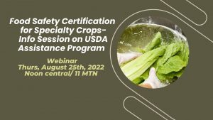 To provide an overview of how your farm can utilize this program to improve your specialty crop business, SDSPA will be hosting a webinar on Thurs., August 25, 2022 at 11 am MTN/ noon central, with FSA specialists providing an overview of the program. To assure you have access to the webinar link, please sign up on Eventbrite.
