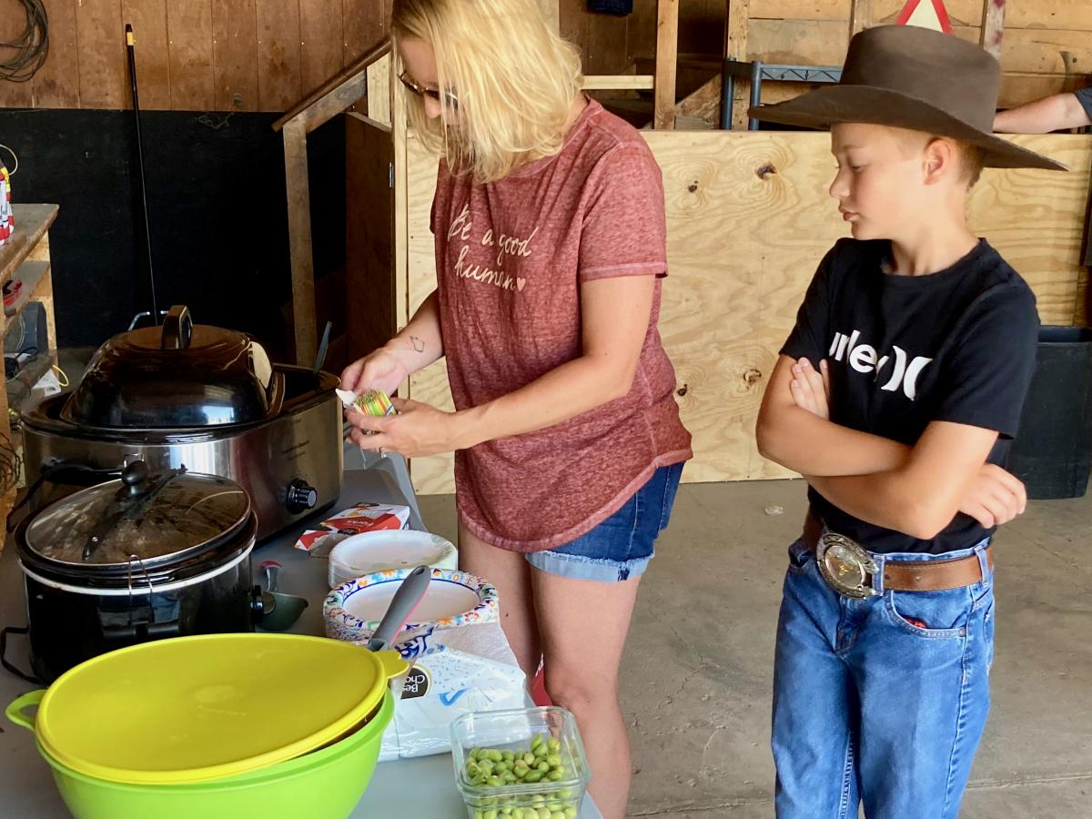 Duncan explained more about the Belle Fourche Water Irrigation system (how to ‘order’ water, how water is delivered, perspectives about water quantities, etc.) Duncan also compared and contrasted conventional to organic farming- the attendees had plenty of questions and discussion. Samples of slow cooked Highland beef and Mangalitsa pork were served along with watermelon slices. Attendees had time to wander about the farm a bit to see goats, crops, equipment, etc.
