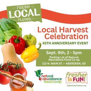 - Natural Abundance Food Co+op in Aberdeen held a Local Harvest Celebration featuring honey & other specialty crops on Sept. 9, 2023.