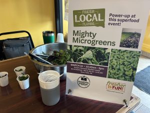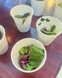 During the event attendees were able to learn about the nutritional benefits of microgreens while trying a variety of samples including onion, broccoli, radish, and sweet corn microgreens. Sanaa’s also prepared samples of focaccia bread and salad featuring local microgreens.
