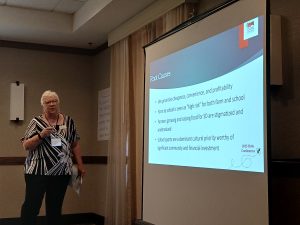 The S.D. Farm to School Core Leadership Team hosted two sessions and an informational booth at the School Nutrition Association of S.D. State Conference June 25, 2025. Janielle Peterson from the S.D. Dept. of Education, Megan EisenVos from Dakota Rural Action, and Malisa Niles from SDSPA hosted the session that focused on the ‘Five Root Cause Analysis’ topics the team has been reviewing from the April 11th focus group. Session attendees were asked to brainstorm the current trends and future opportunities on the root cause analysis statement that the connection between food, nutrition, behavior and academic performance is not widely apparent, especially among parents, school administrators, or decision makers. Many ideas and conversations were generated. These sessions were the starting point of the two upcoming S.D. Farm to School Root Cause Analysis meetings July 8th in Sioux Falls and July 22nd in Rapid City. More information and registration can be found at Farm to School Summer Brainstorm Event Registration.