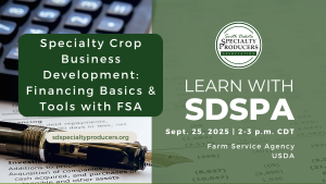 On Thurs., Sept. 25th at 2 p.m. Central join SDSPA for a 2nd webinar on ‘Financing Basics and Tools’ featuring the S.D. Small Business Development Center (SD SBDC) and Farm Service Agency (FSA).