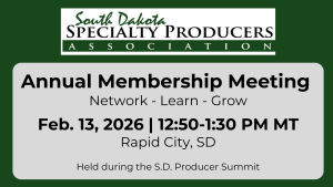The 2026 membership season for the South Dakota Specialty Producers Association (SDSPA) is officially underway! By now, you should have received a renewal letter and application in your physical mailbox detailing our goals for the coming year.