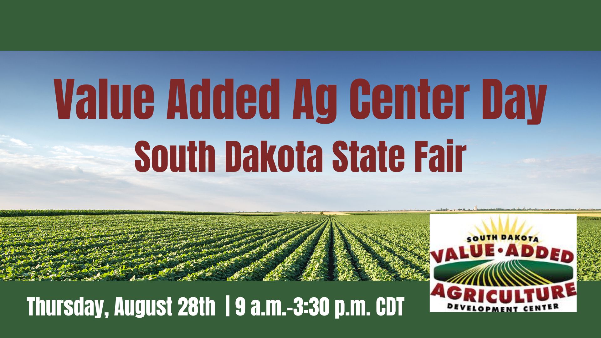 S.D. State Fair Huron, SDThe Value Added Agriculture Development Center (VAADC) invites you to attend the 26th Annual Value Added Agriculture Center Day at the South Dakota State Fair in Huron, S.D. on Thurs., Aug. 28, 2025. This event will highlight a variety of products, producers, and support organizations. This event
