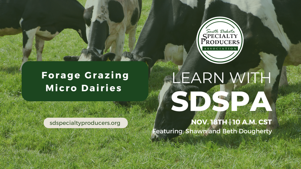 South Dakota Specialty Producers Association coordinates educational events through on-farm tours, conferences, workshops and online webinars with topics directed by member input. Visit our events calendar for a full listing of events on topics such as business development, specialty crop production, urban agriculture, organic and regenerative organic,